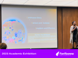 This spring, the Fontbonne community came together to support students who participated in the annual Academic Exhibition. Undergraduate and graduate students presented their academic projects to this large group of campus partners via oral and visual presentations. This exhibition gives students a chance to experience the formal academic setting including receiving immediate feedback from faculty, staff and other students.